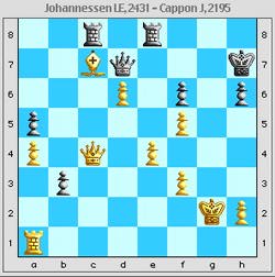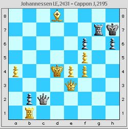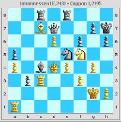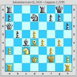 Après vacances et championnats, reprise des entrainements. Comme convenu, on a commencé l'analyse des parties de John jouées au cours du tournoi de Cappelle la Grande 2000. Aujourd'hui, c'est le match opposant le MI Johannessen (2431) à John lors de la 6°ronde.