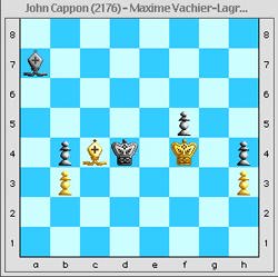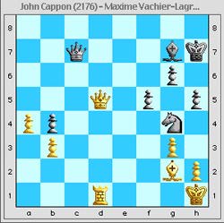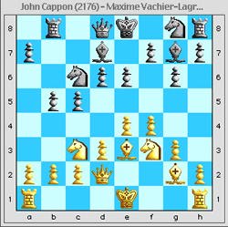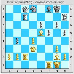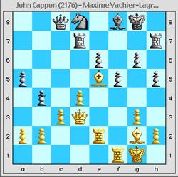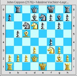 Devant l'impossibilité temporaire de connexion entre joueurs, nous nous sommes réunis dans le salon privé et nous avons inauguré un nouveau mode d'entrainement : le commentaire de parties déjà jouées. Aujourd'hui c'est le match de Nationale 2 opposant John Cappon (2176) au jeune surdoué Maxime Vachier-Lagrave (2240) du 21 novembre qui est sous les feux du projecteur. Sicilienne fermée.