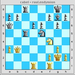 27. Qe3 (?? il fallait peut-être sacrifier en e6 Nxe6 et fxe6 puis Qxe6 echecs et Rxd6, mais avec toujours du materiel en moins) d5 28. h4 Rc3 29. Qd4 Ng4 30. Qb4 Rc2 31. Nh3 Ne3+ (le clouage continue, mat dans pas longtemps) 32. Kg1 Nxf1 33. Qe1 Nxg3 34. Kh2 Ne4 35. Nf4 Rxf2+ 36. Kg1 Rcc2 (temps fini 0-1) 37. 0-1