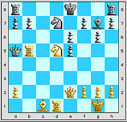 Le Cavalier-dame blanc représente le plus grand danger pour les Noirs. Ces derniers s'efforcent de restreindre son action par a6 et e6, ou de I'échanger rapidement.