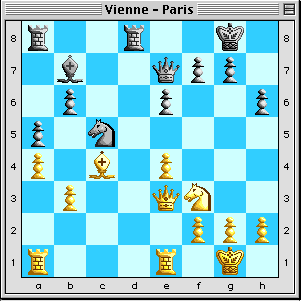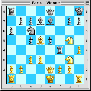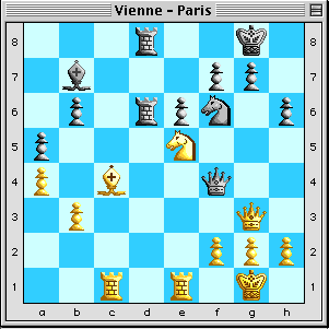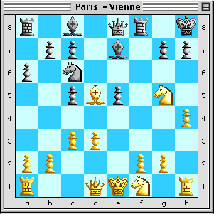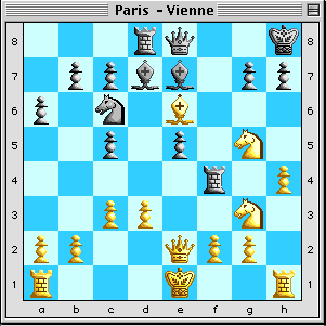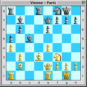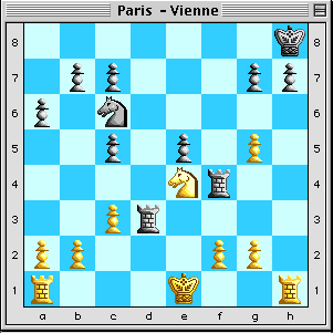 Voici 2 parties par correspondance jouées entre Paris et Vienne vers la fin du 19eme siècle. Elles ont été abondamment commentées par Rosenthal, qui était le leader de l'équipe parisienne, dans "LA STRATEGIE", l'ancêtre d'Europe Echecs. Elles sont en outre amusantes car il y a eu un "clash" retentissant entre les membres de l'équipe, et Rosenthal a pratiquement terminé seul les deux parties.Autre point intéressant : il y a un siecle et demi, les commentaires de partie étaient souvent beaucoup plus "légers" et assez généraux, avec très peu de variantes. Les commentaires de Rosenthal sont assez didactiques, rentrent dans le détail des analyses, et ils donnent une bonne idée de la manière des conceptions et du niveau d'un fort joueur de l'époque. Il faut se souvenir en effet que Rosenthal a son meilleur niveau faisait sans doute partie des 10 ou 15 meilleurs joueurs mondiaux . Il était d'origine polonaise, immigré en France semble-t-il pour des questions politiques, et il était le "professeur" du Café de la Régence, et vivait surtout de lecons d'échecs, de simultanées, et de publications. C'était un peu le "coach" des forts joueurs parisiens. Toutes proportions gardées, il a probablement eu un rôle un peu comparable à celui de Spassky en France durant les années 80.