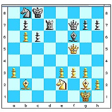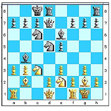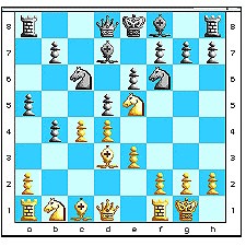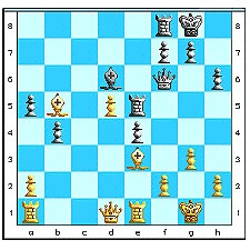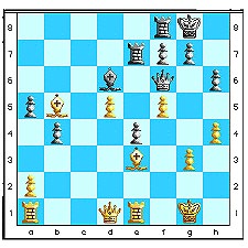 12)dxc3 Fd6 ( à noter que l'échange des dames était ici favorable aux noirs) 13)c4 Fg4? 14)f3 Fe6 un temps perdu..15)Dc2 f5! 16)Tfd1 De7 17)b4 Df7 (De6 gagnait un temps) 18)c5 Fb3!