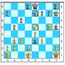 Une belle partie de combat avec des passes tactiques compliquees. Je neconnais pas le resultat final, mais sur l'echiquier, apres 31.fxe4, le roinoir a du souci a se faire. Je suggere a Catherine (?) d'etre un peu plusagressive dans le debut de la partie et au meneur des Noirs de pousser jusqu'au bout ses idees d'attaque.