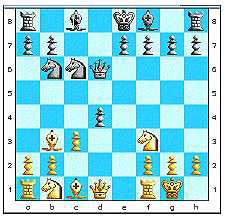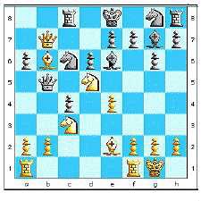 11... b5 12. Nd5 bxc4 13. Qb7 {attaque et prend l'initiative} 13... Rc8 14. Bb6 Qb5 15. Nbc3