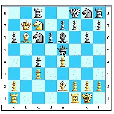 16... Ne7 17. Nxh6 {Le jeu d'echecs est ingrat : les Blancs combinent bien, mais ne se rendent pas compte des effets secondaires de leur combinaison. Certes, ils gagnent un pion, mais ils OUVRENT LA COLONNE h sur leur roi et se condamnent.} (17. Qe2 "position ÈquiulibrÈe") 17... Qh7 18. Ng4 18... Bb4 {Les Noirs attaquent tous azimuts, mais Bxg4 directement etait ok puisque les Blancs sont menaces de mat et ne peuvent donc pas reprendre.} 19. c3